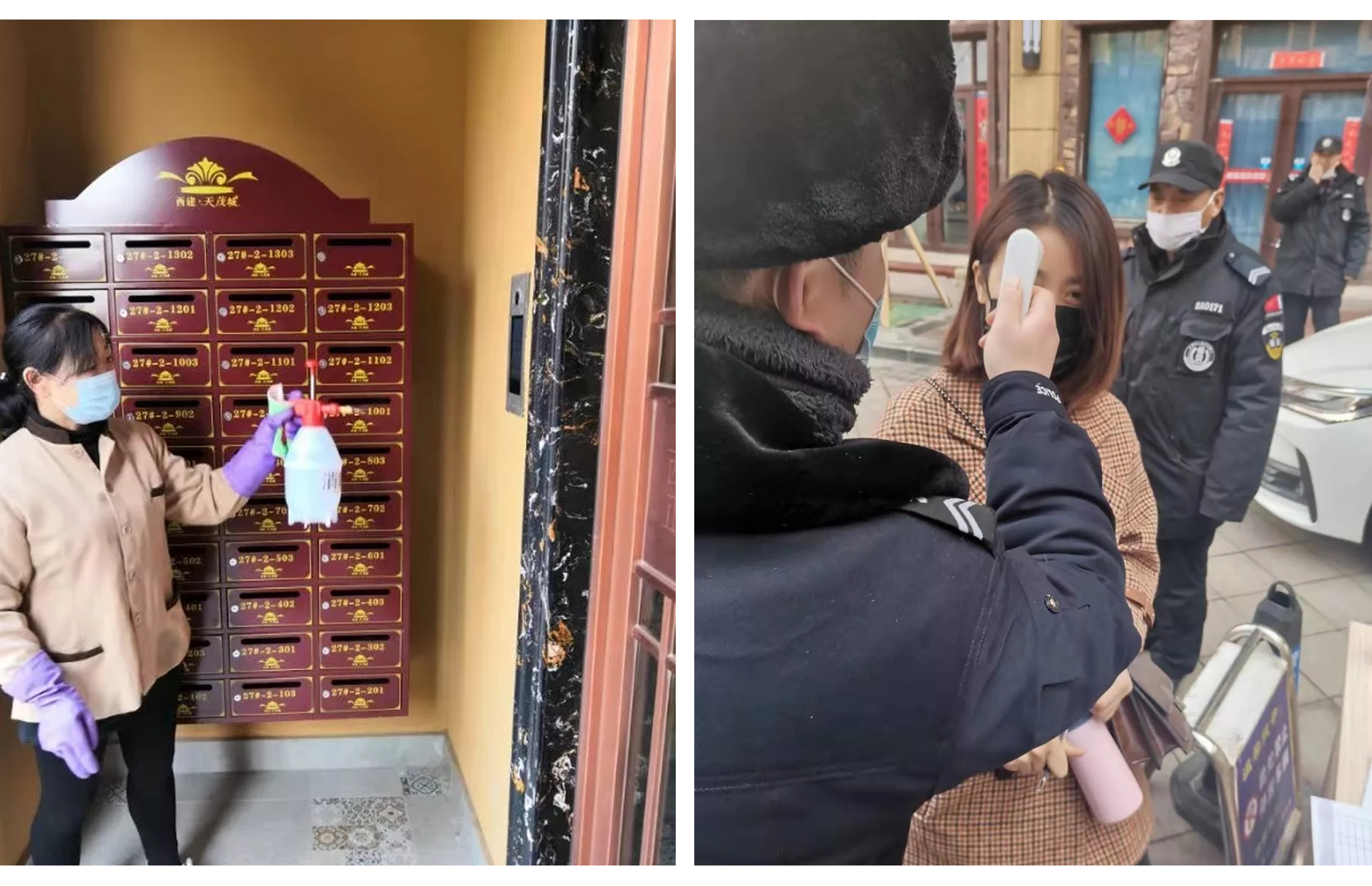2、暫時(shí)封閉小區(qū)西門、東門及北車庫(kù)入口,留一個(gè)主要出入口。所有小區(qū)業(yè)主及備案車輛從南門(續(xù)建一期大門)進(jìn)出。保安嚴(yán)格把控,人人做登記,人人測(cè)體溫,對(duì)車輛進(jìn)行消毒,對(duì)非小區(qū)業(yè)主進(jìn)行勸退。同時(shí)提醒廣大業(yè)主戴口罩,無(wú)緊急事情不要外出。