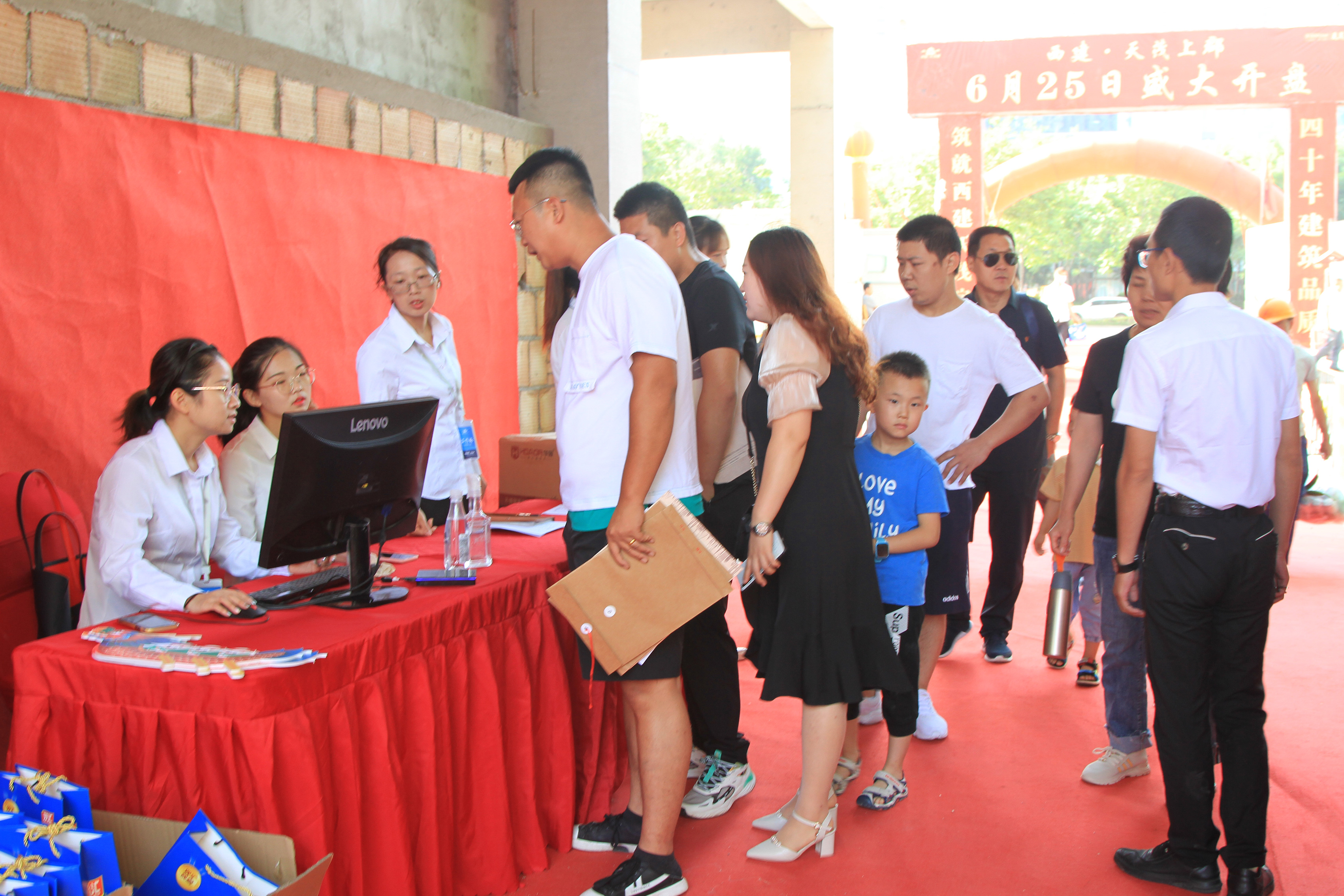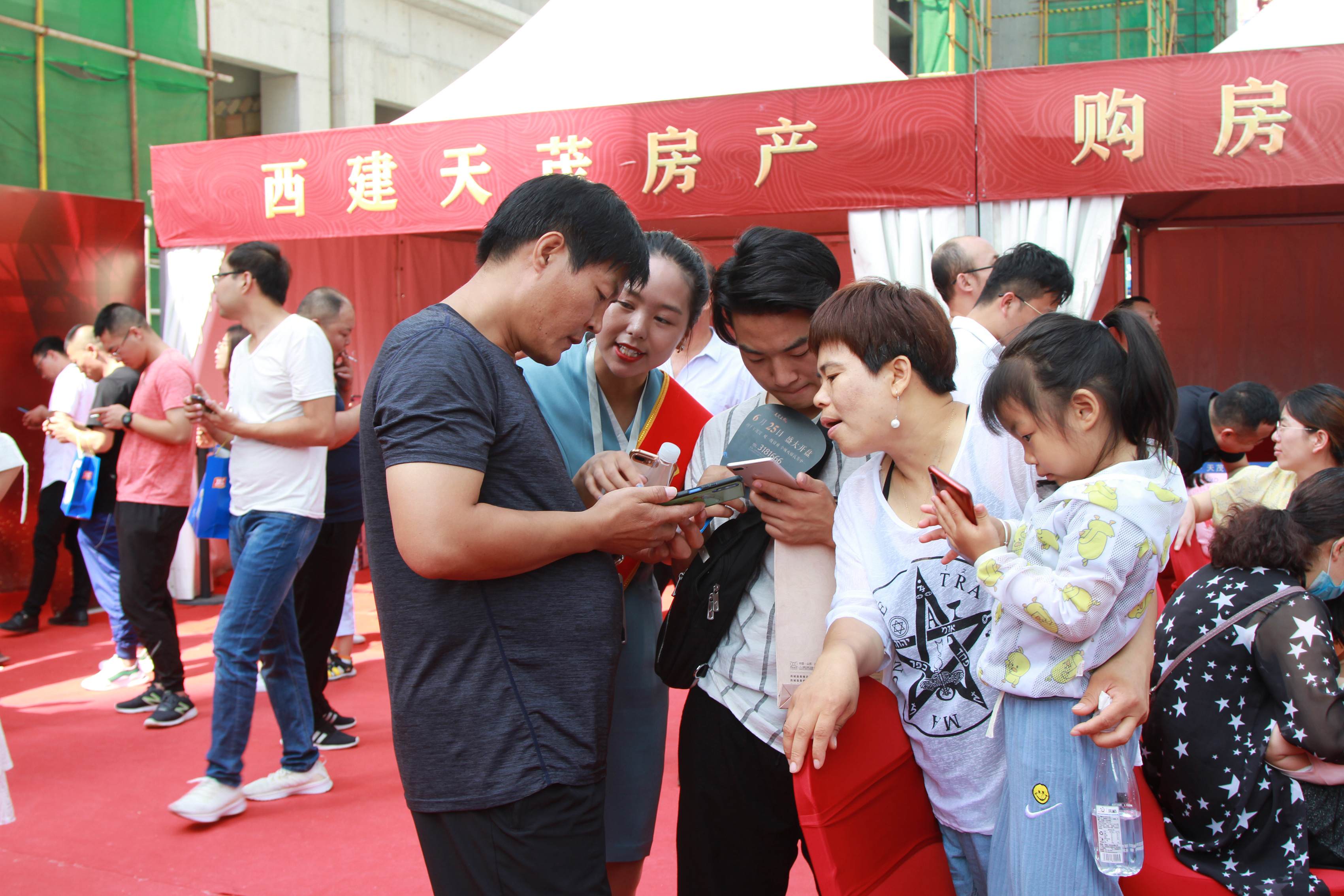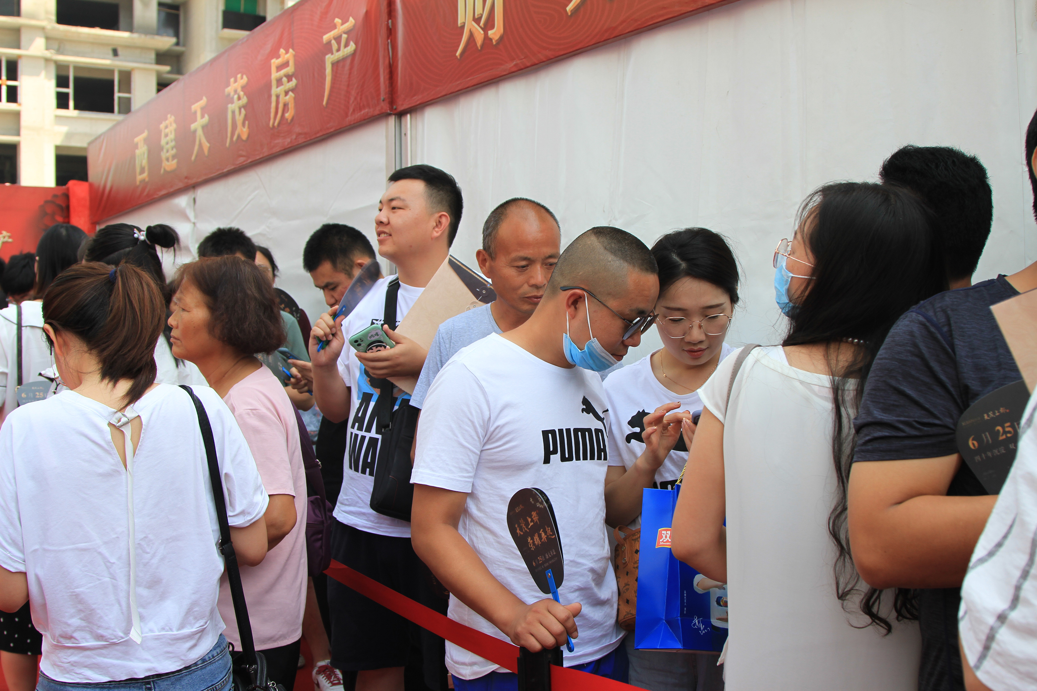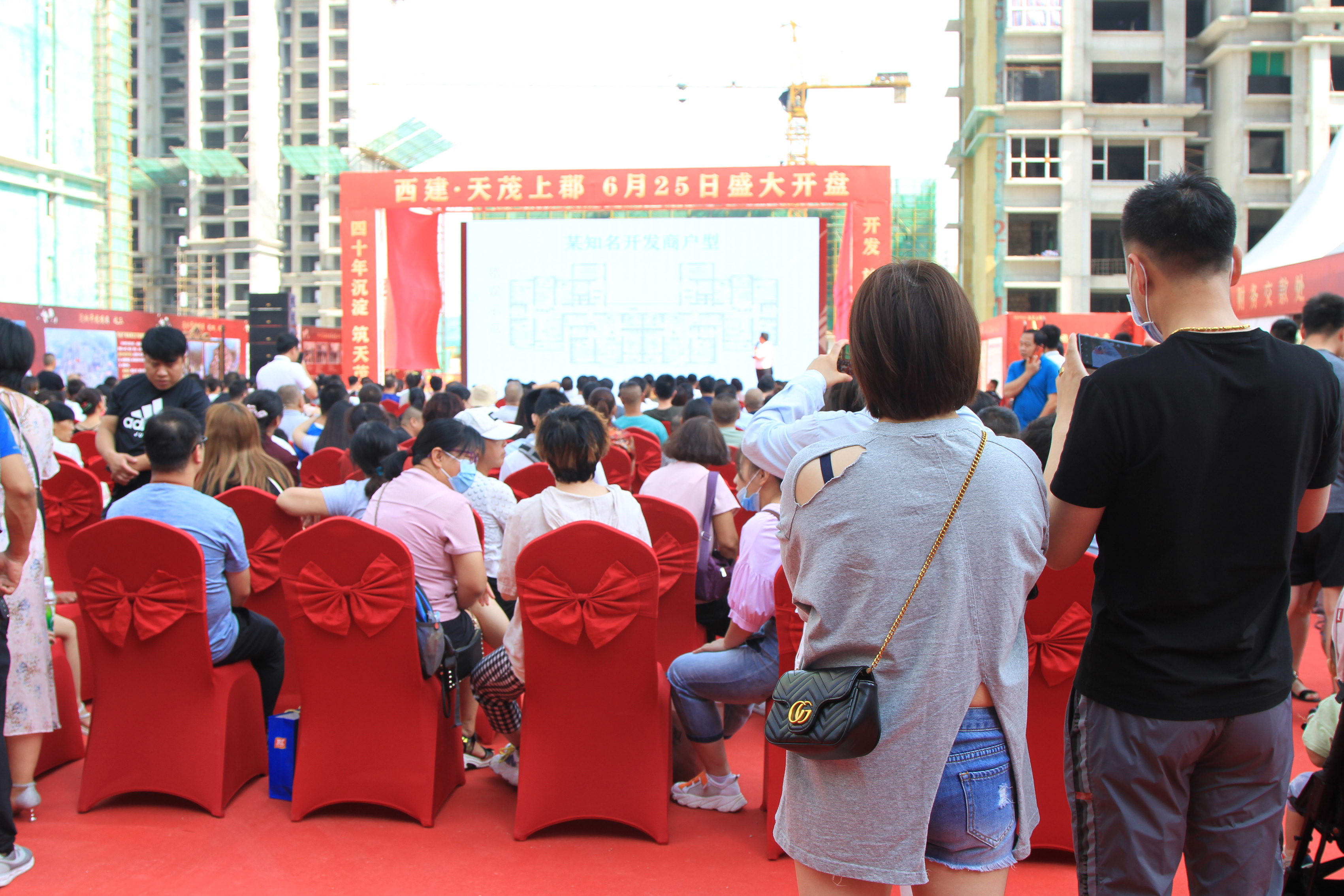 雖然天氣炎熱,但依然抵擋不住大家的熱情,開盤時間還未到,一支百人服務大隊整裝待發,早早守候在天茂上郡中央廣場會場內,靜待尊貴的客戶蒞臨。距離開盤還有一個小時,偌大的會場早已人聲鼎沸,大家早早趕來生怕與心儀房源失之交臂,眾多購房者翹首以盼,焦急地等候開盤儀式,共同見證西建·天茂上郡開盤的盛況。