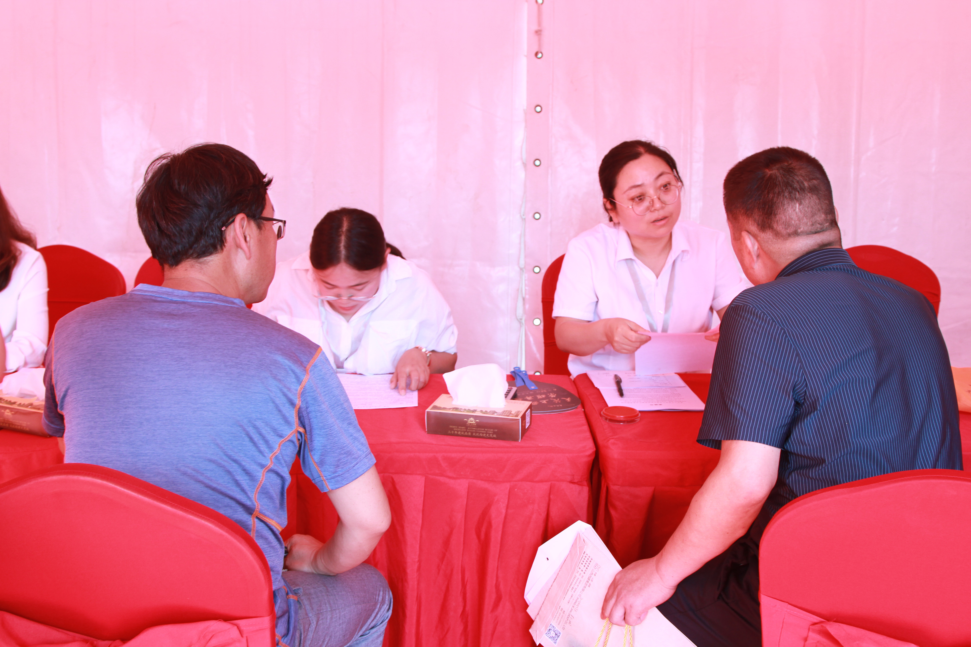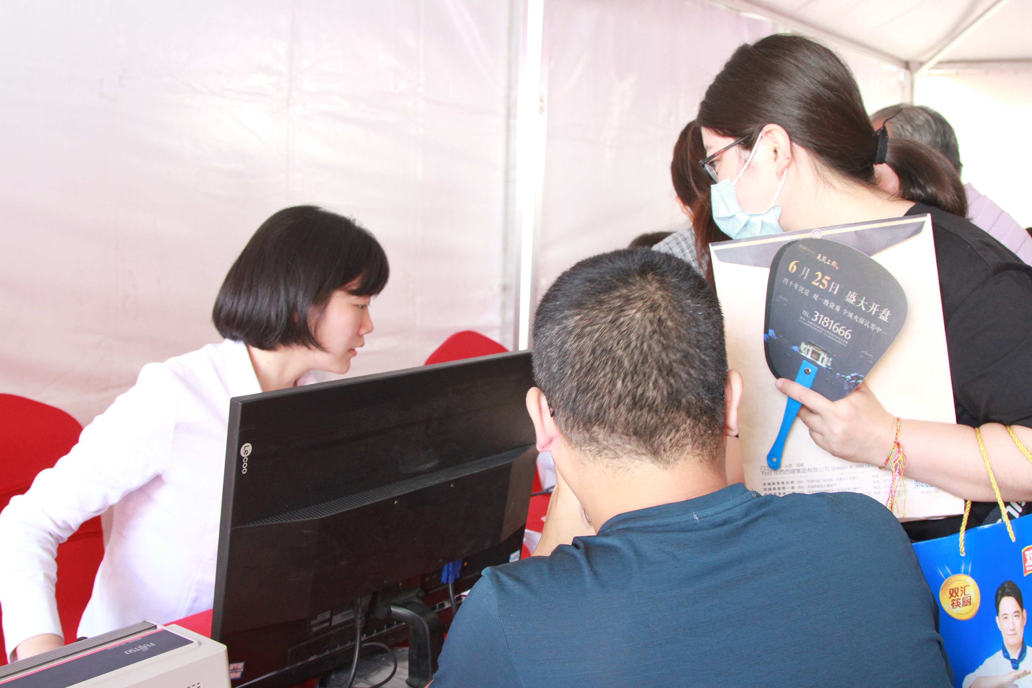 經過激烈的選房大戰,客戶們選到心儀的房子都井然有序的排起了長隊等待著去交款,財務室門外排起了大長隊,財務室里也是各種忙碌。