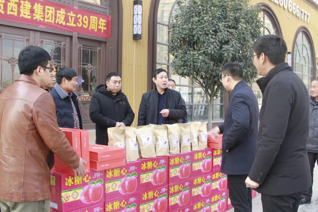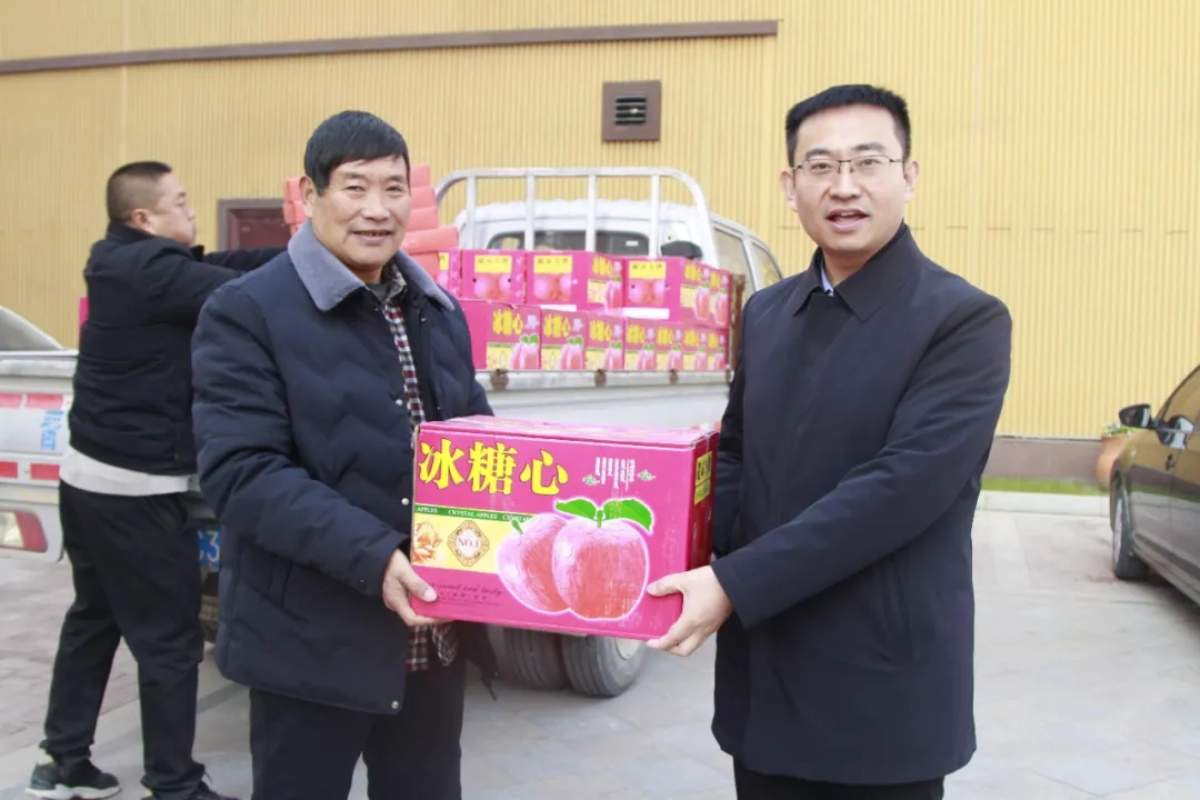 12月27日上午,芮城縣西陌鎮朱陽村黨支部書記劉中岳、村委主任劉海江帶領村委干部一行五人來到西建集團,為西建集團工地的農民工兄弟送去了一百箱蘋果和一百袋柿餅。西建集團董事長劉智強親切接見了村委一班人。劉董事長拉著大伙熱情的問候,說道:“非常感謝大家的到來,帶來了家鄉的蘋果和柿餅,我從朱陽村走出來,也想為家鄉建設做些貢獻,也非常感謝大家對西建的認可和支持。”