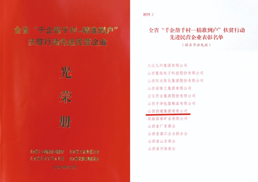 山西西建集團榮獲全省“千企幫千村—精準到戶”扶貧行動“先進民營企業”榮譽稱號