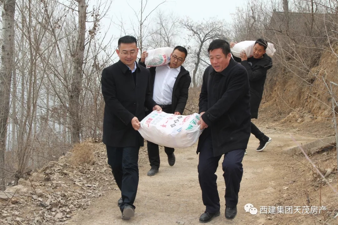 2019年1月25日,西建集團董事長助理、天茂城分公司經理劉忠森帶領公司工作人員與駐村第一書記董旭江,一起前往垣曲縣解峪鄉解村慰問貧困家庭,并出資1.77萬元采購貧困戶家中3000余斤小米,幫助他們解決農產品銷售難問題,助力貧困家庭脫貧增收致富。