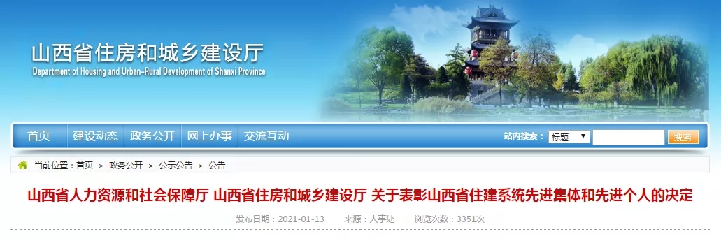 2021113日,山西省人力資源和社會(huì)保障廳、山西省住房和城鄉(xiāng)建設(shè)廳,在《關(guān)于表彰山西省住建系統(tǒng)先進(jìn)集體和先進(jìn)個(gè)人的決定》中,西建集團(tuán)被評(píng)為“山西省住建系統(tǒng)優(yōu)秀企業(yè)”。