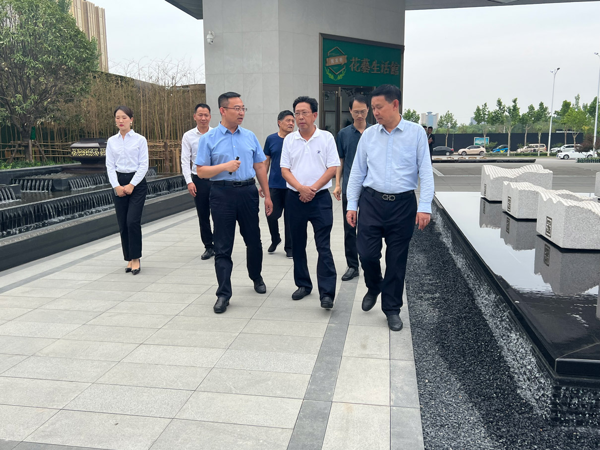 李培鴻實地參觀了天茂國賓府及文化景觀示范區,全面了解該項目總體規劃、項目進展、品牌建設等情況,與企業負責人親切交談,認真聽取疫情之下企業發展情況和項目建設中遇到的法律問題,提出指導意見。