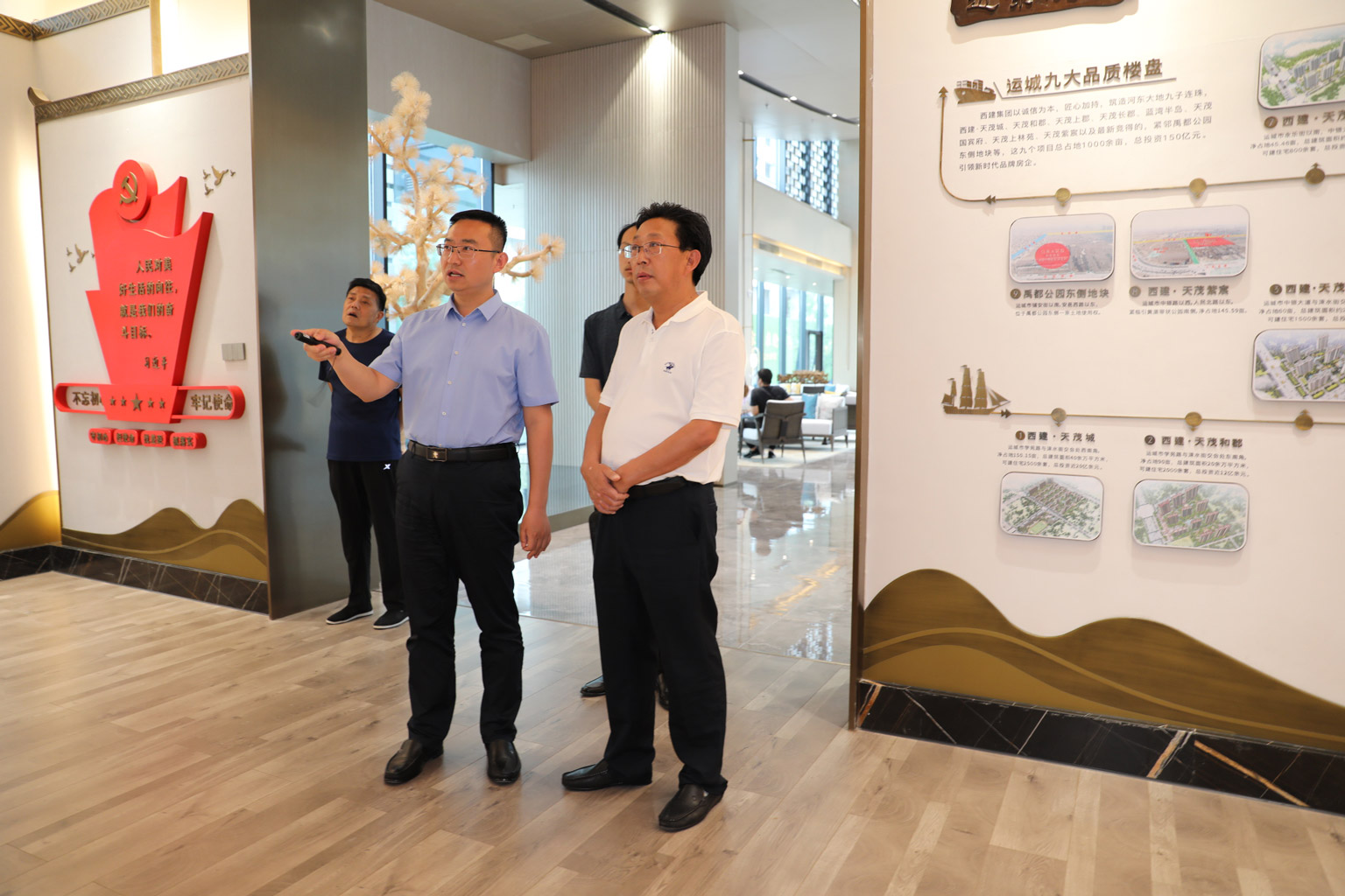 劉忠森對李書記的到來,表示熱烈歡迎。作為國賓府項目的締造者,劉忠森詳細介紹了國賓府及景觀示范區的規劃建設情況,并對國賓風華每一處的景觀的匠心建設進行解析。劉忠森講到,西建集團的每一處作品,都凝結了西建人細致入微的品質把控,我們唯有以如切如磋,如琢如磨精益求精的工匠精神,建好每一處工程,做好每一個細節,篤行不怠,奮力書寫品質時代的房企新篇章。