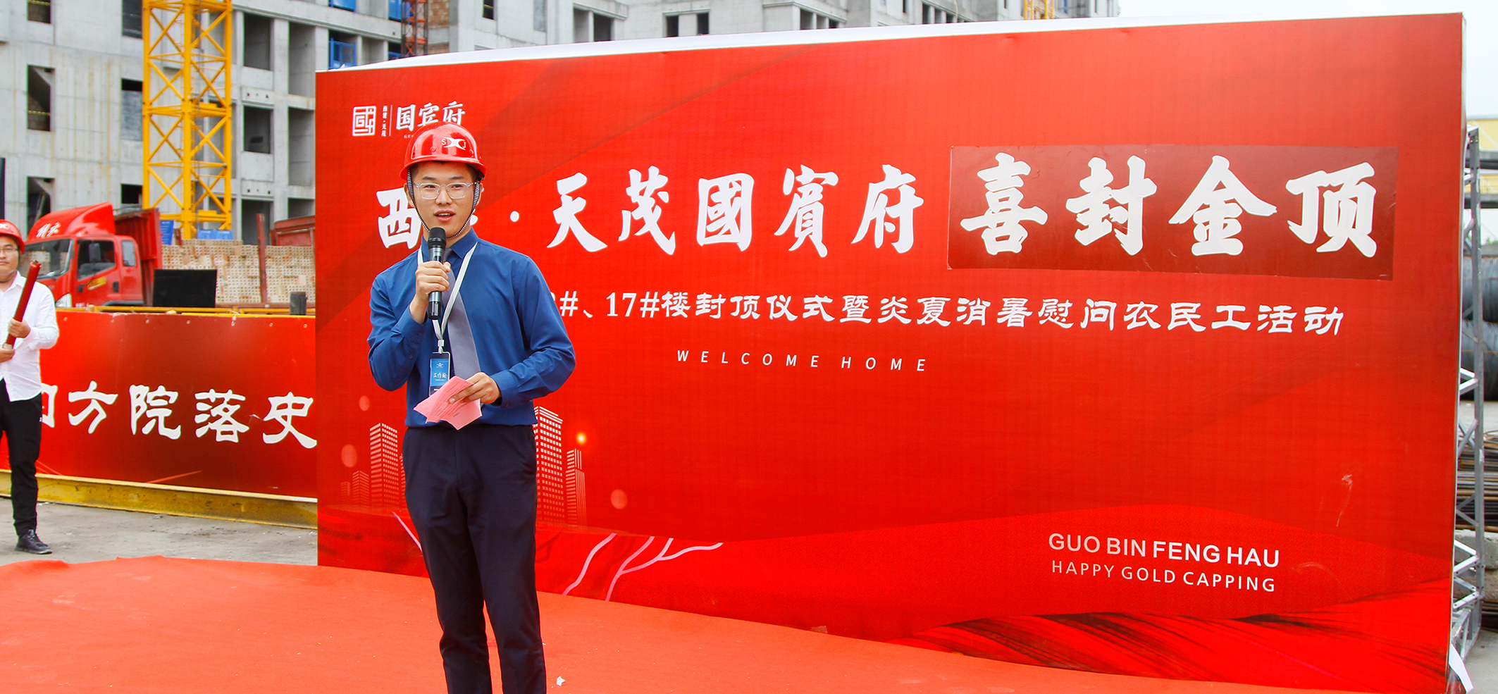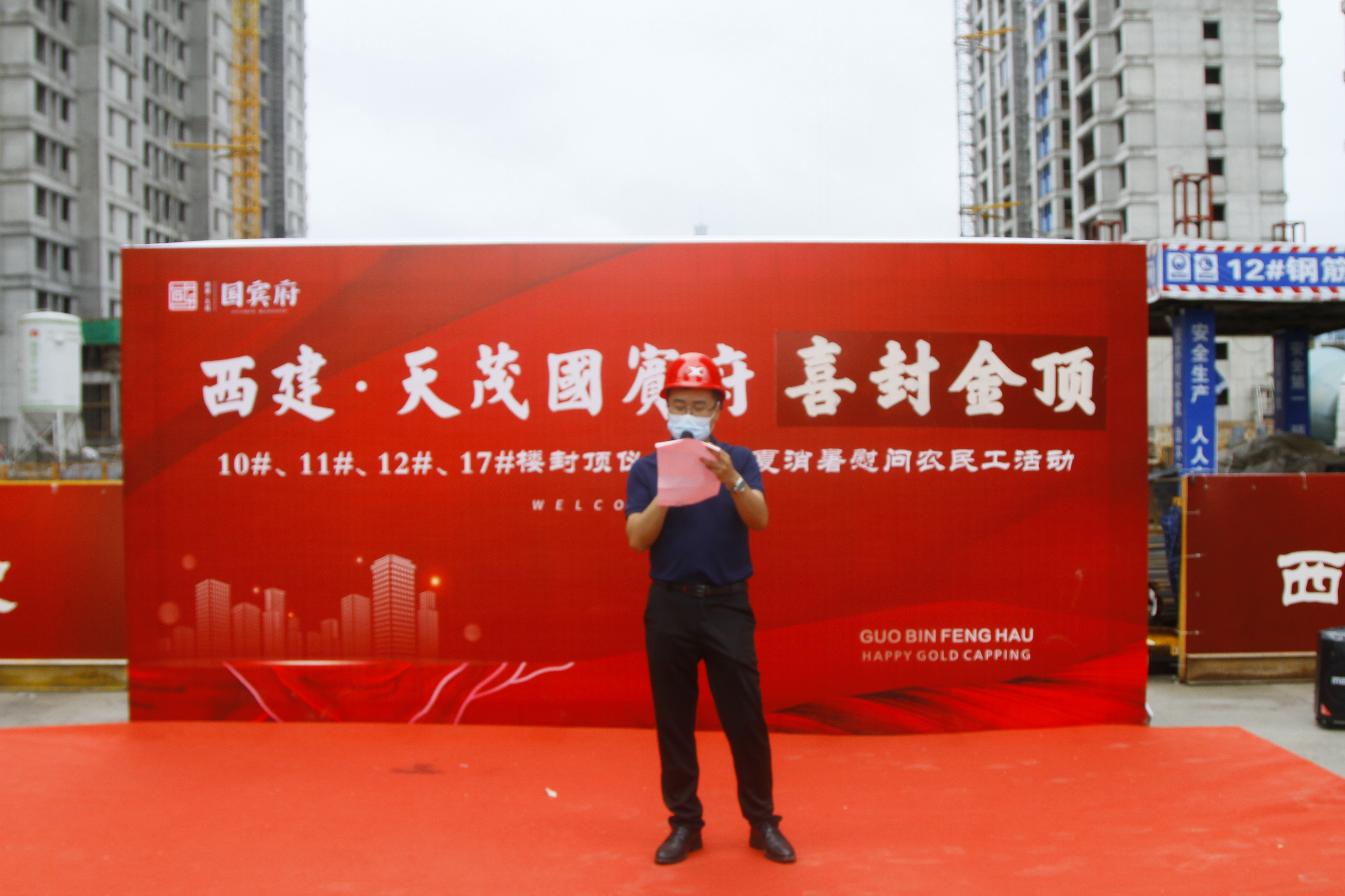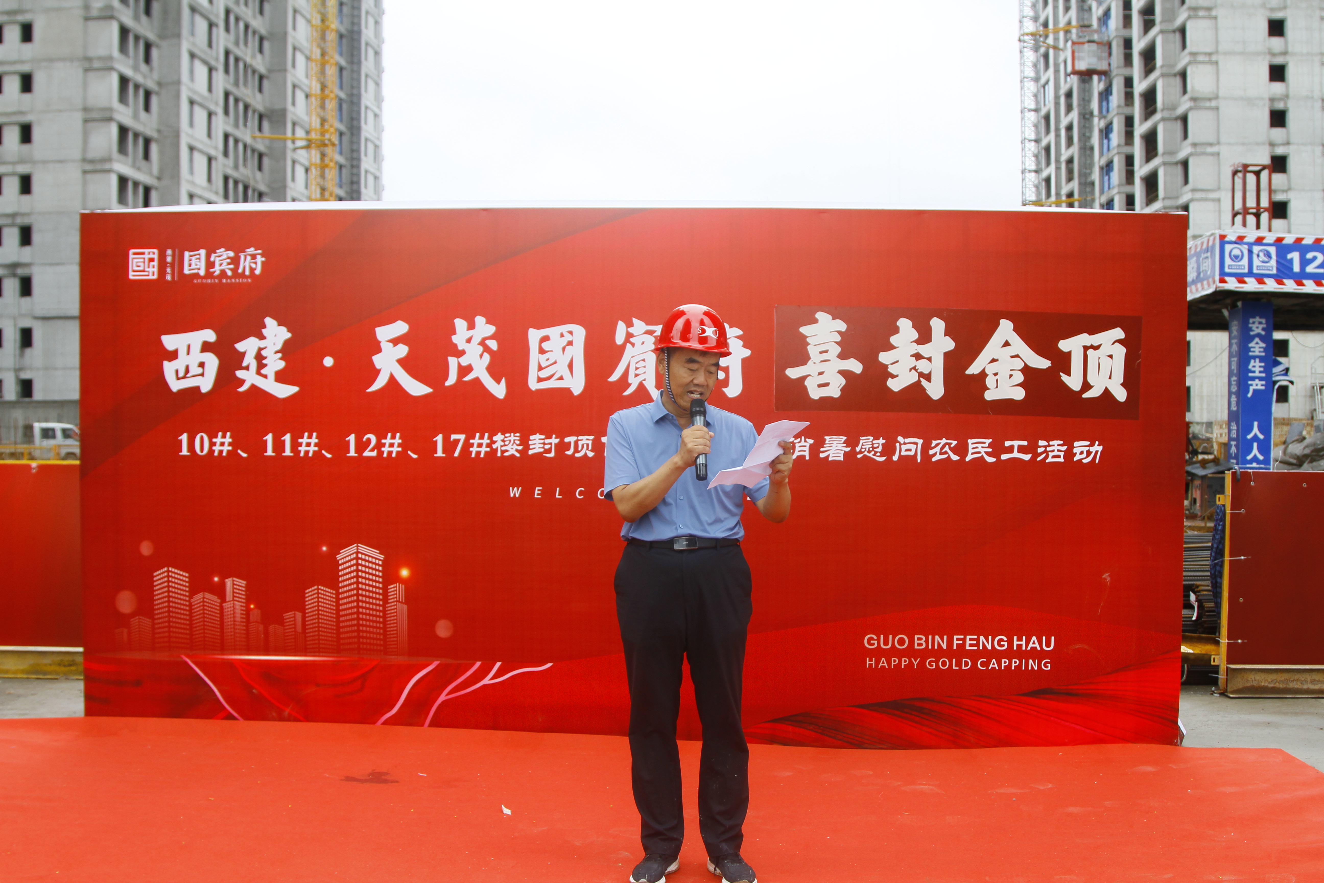7月16號,西建·天茂國賓府的工地上塔吊聳立、人頭攢動,社會各界人士齊聚這里,熱烈慶祝西建·天茂國賓府10#、11#、12#、17#號樓喜封金頂,標志著西建·天茂國賓府一期樓棟基本全部封頂!此次活動在7月16號上午正式開始,除活動工作人員外,特邀農民工兄弟、業主代表、媒體精英、建設方代表等嘉賓蒞臨活動現場共享喜悅。