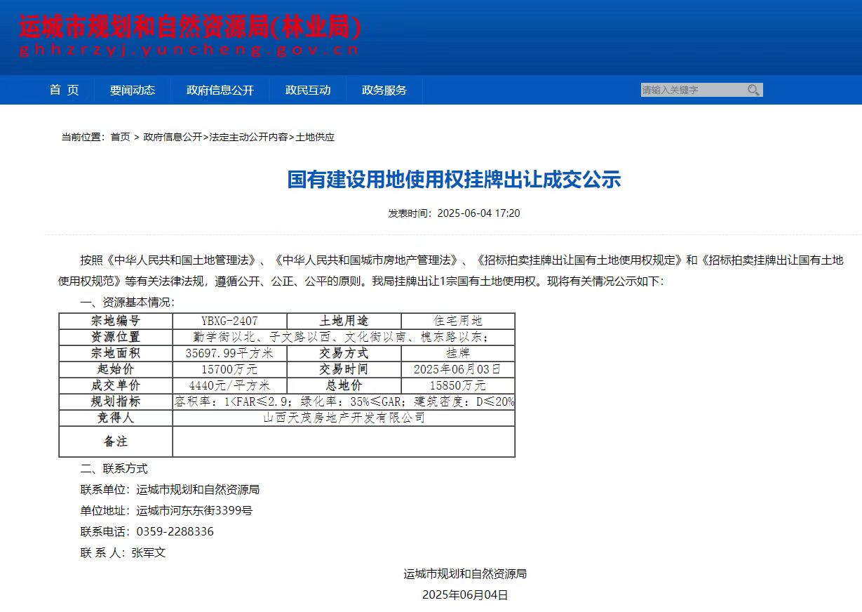熱烈祝賀西建集團成功競得運城北區一宗優質地塊。