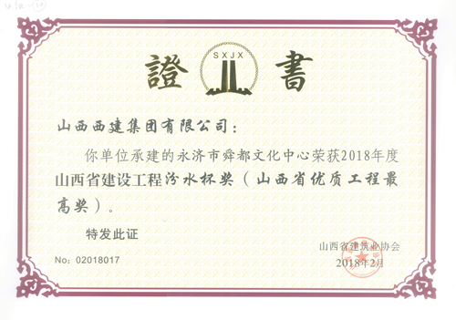 2018年,榮獲“山西省優(yōu)質(zhì)